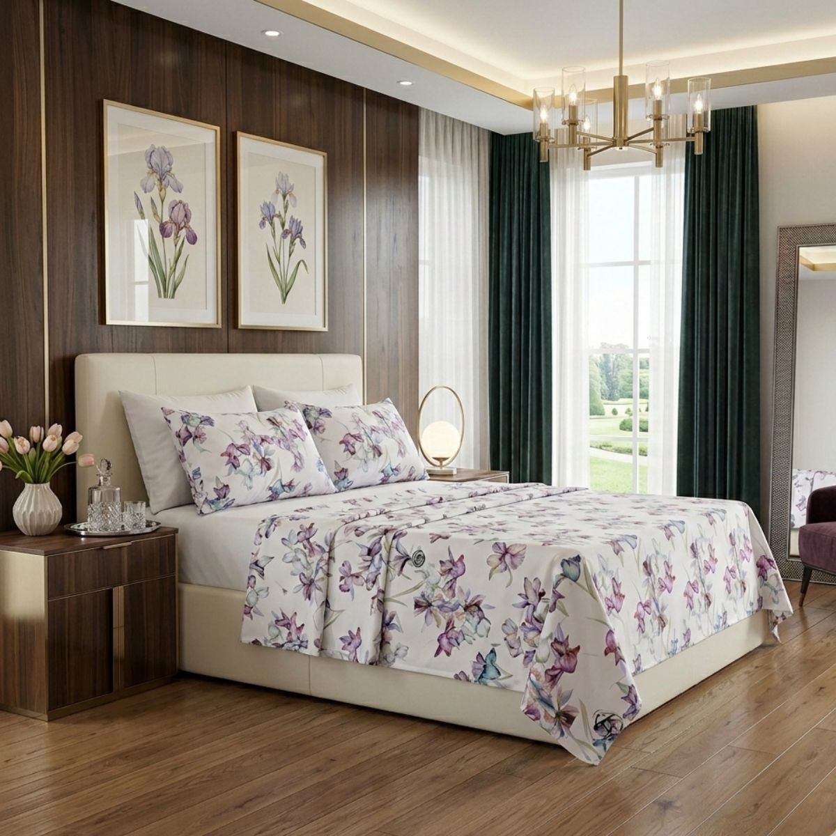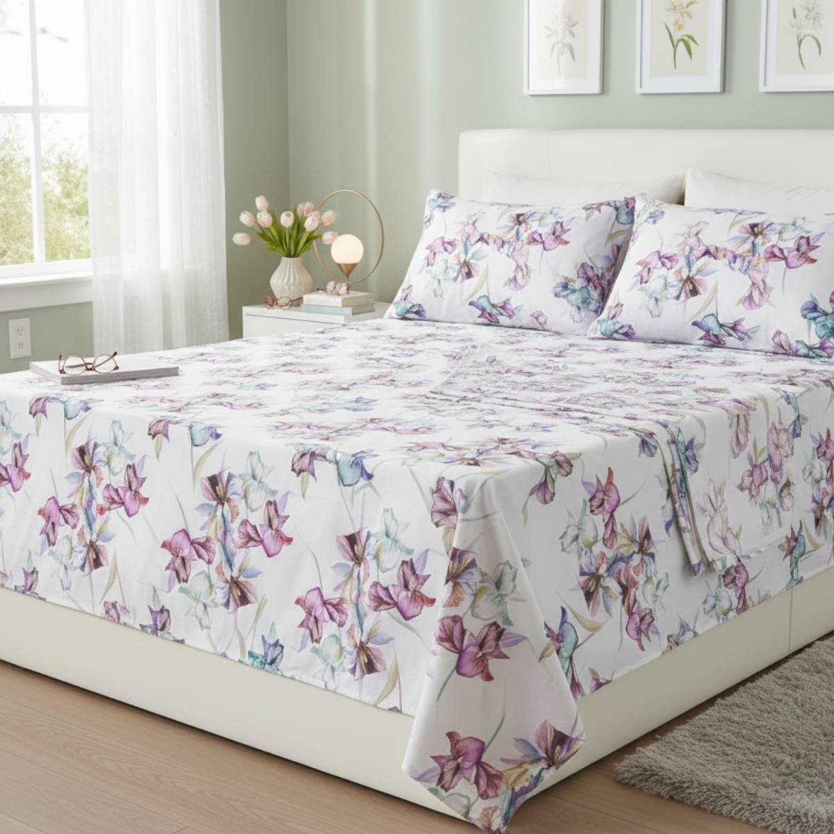 La stampa floreale aggiunge un tocco decorativo elegante e luminoso: la parure è composta da coppia federe e lenzuolo sopra interamente stampato, per un effetto coordinato e armonioso che valorizza subito l’ambiente.