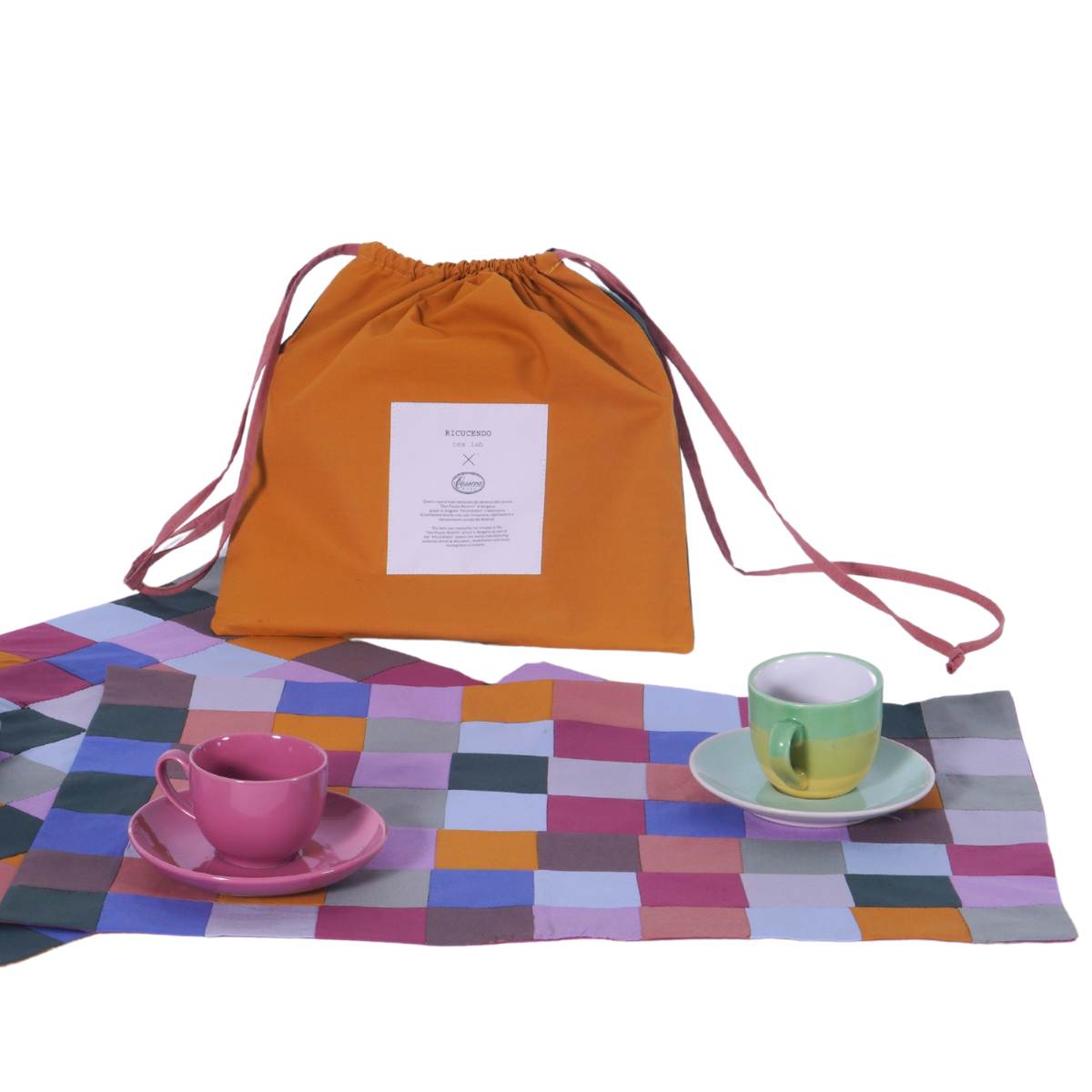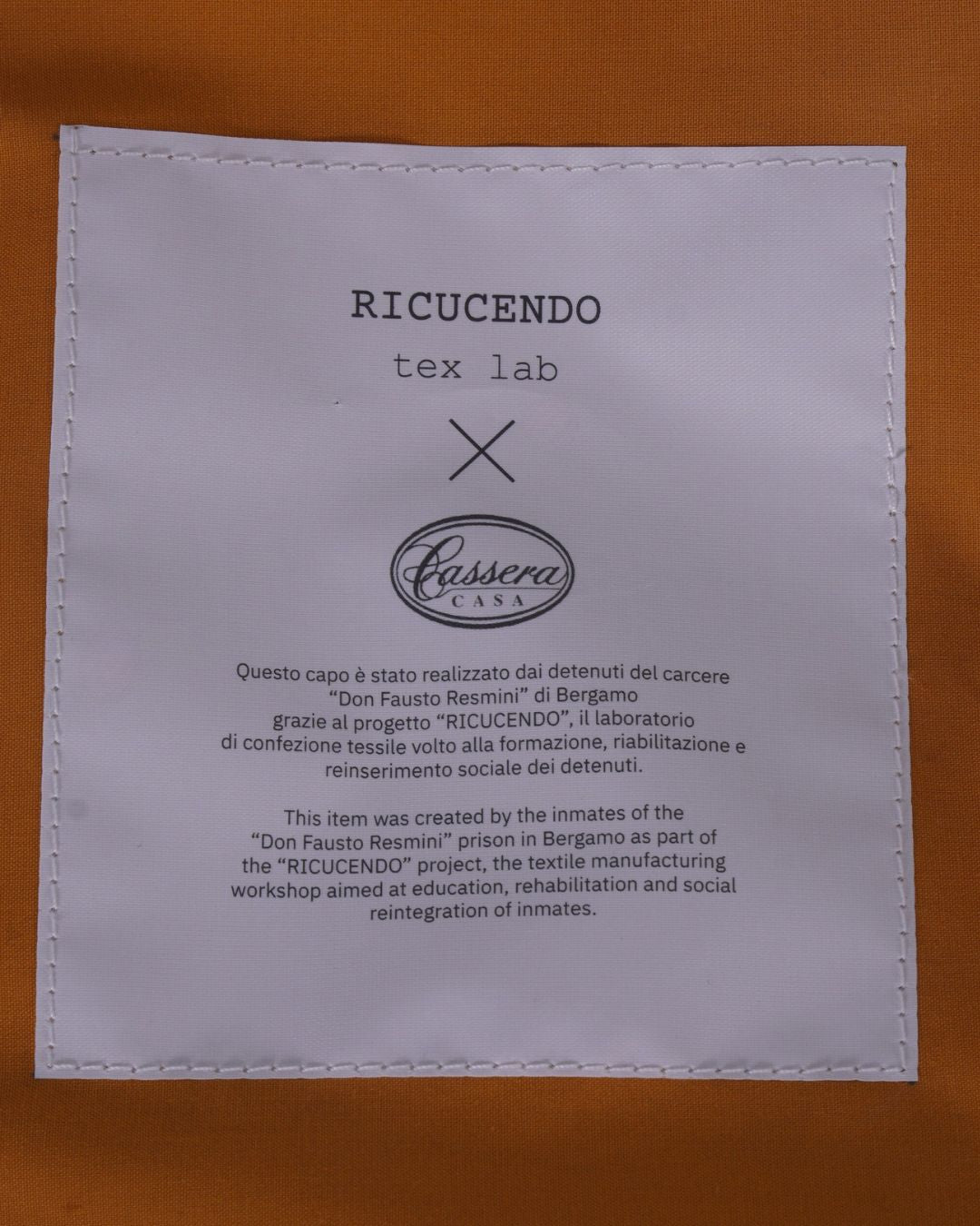 Nato dalla collaborazione tra Cassera Casa e Ricucendo Tex Lab, il laboratorio di confezione tessile nato all’interno del carcere Don Fausto Resmini di Bergamo, questo set composto da:
