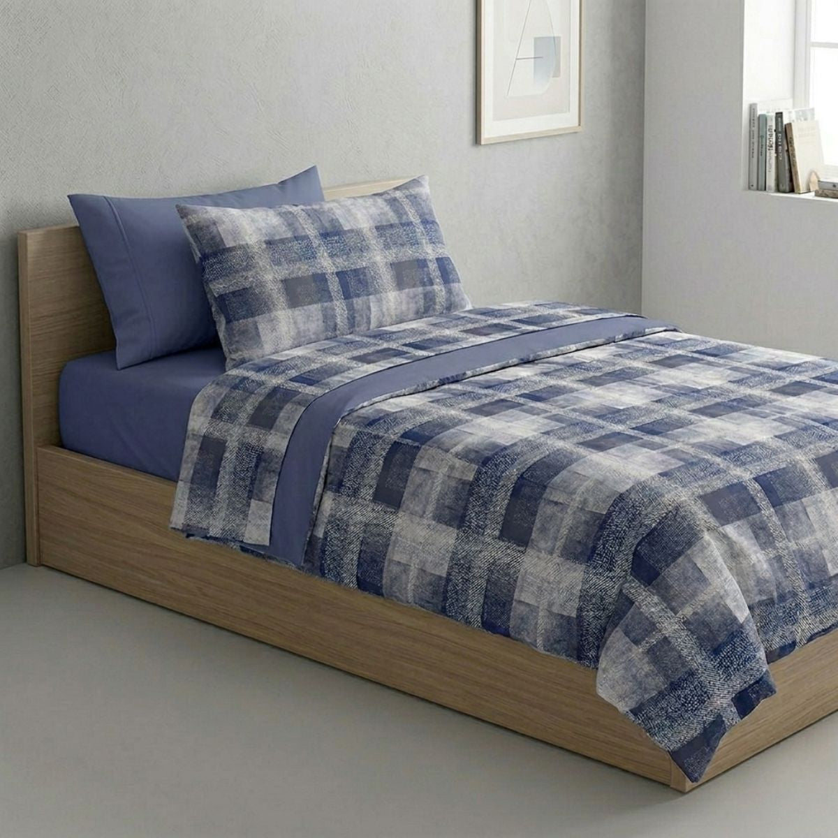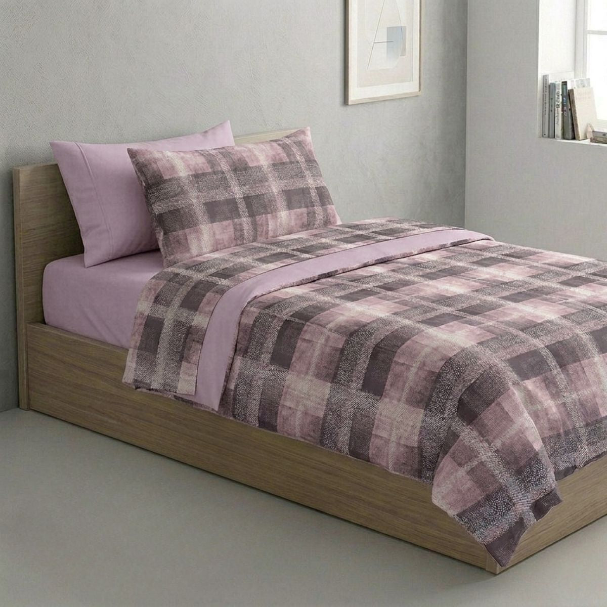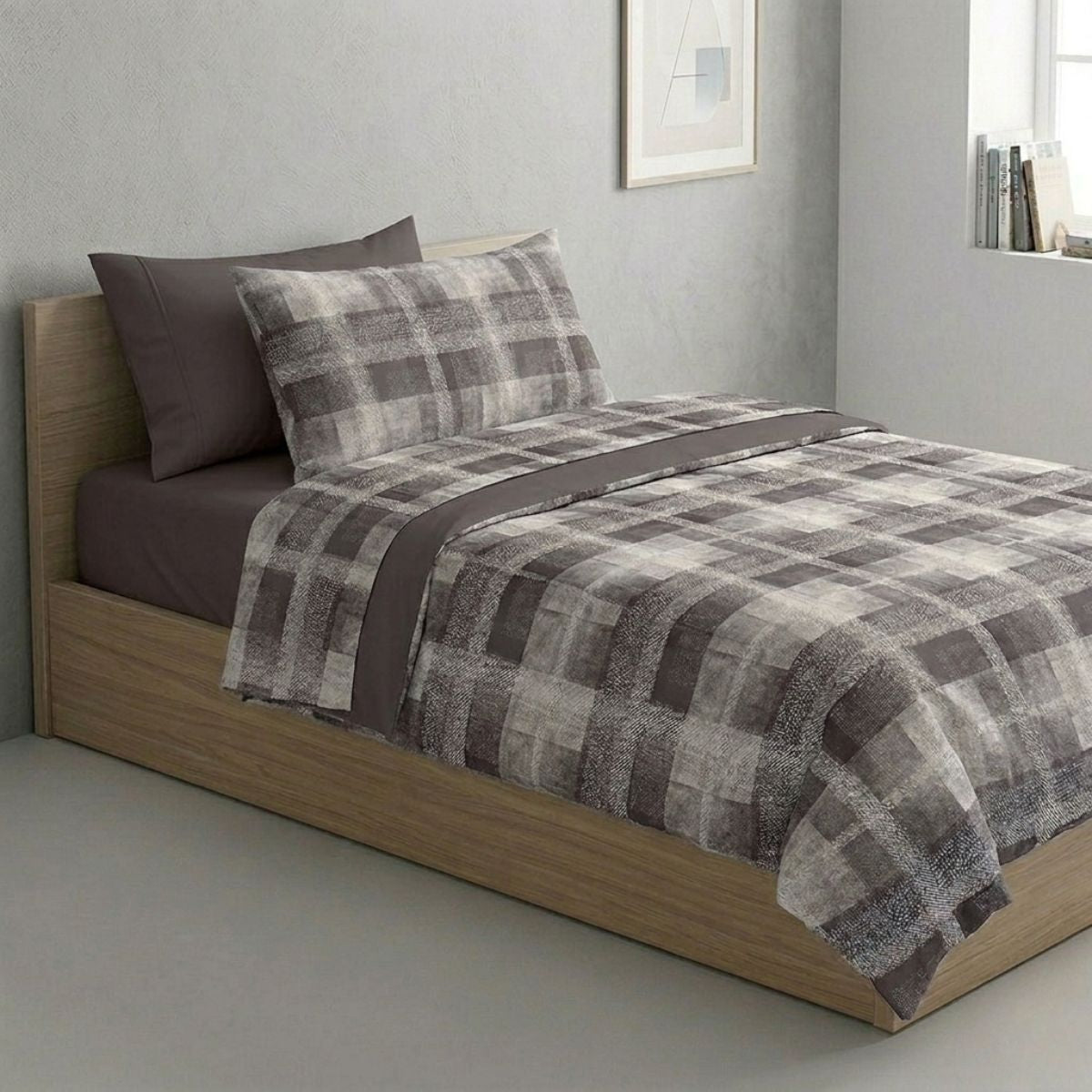 Casahomewear presents the Happidea pure cotton bed set made in Italy with tartan geometry with a modern style and shaded lines.