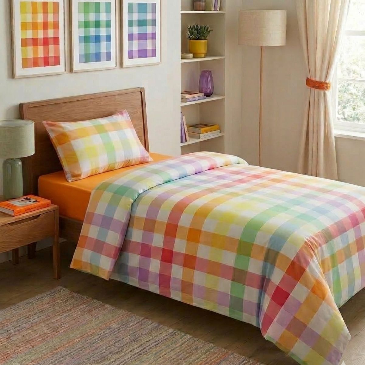 If tartan is a classic, this very lively version by Happidea gives the bedspread set a touch of modernity. A set in 100% sunny natural cotton, fresh both for the natural fiber and for the colors that will give the room a lively look.