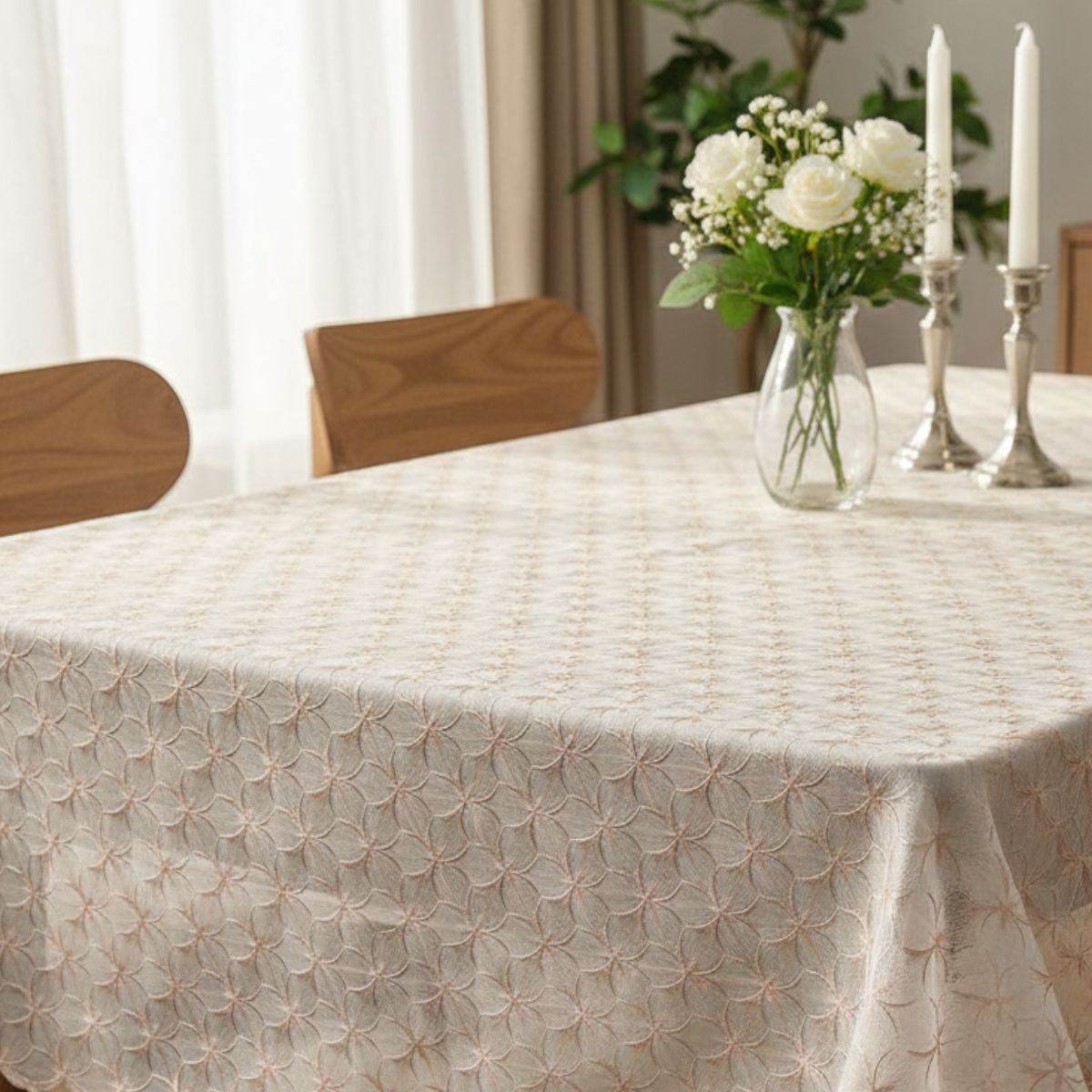 Dai un tocco elegante e contemporaneo alla tua tavola con questo copritavolo in PVC da 170 g/m², impreziosito da un motivo geometrico dorato a rilievo. Pratico e scenografico, è ideale per cucina, sala da pranzo, eventi e allestimenti: protegge il piano e valorizza l’ambiente con uno stile moderno e luminoso.