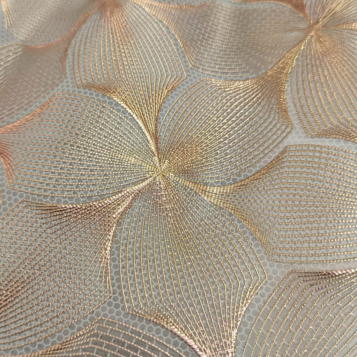 Copritavolo decorativo in PVC – Motivo geometrico dorato (170 g/m², h 137 cm)