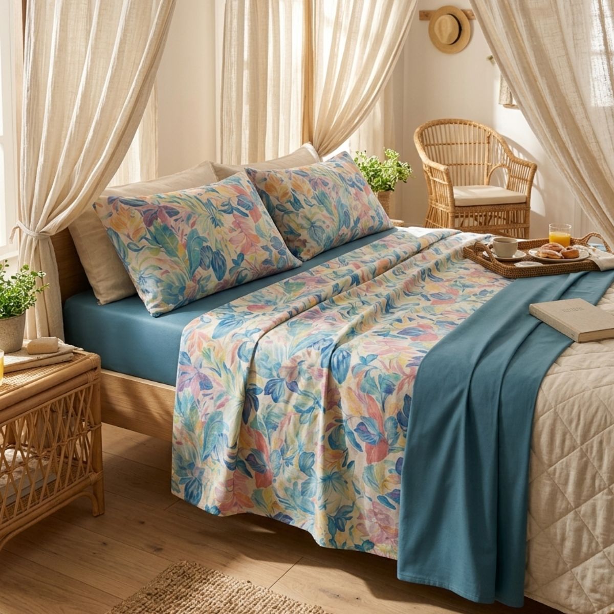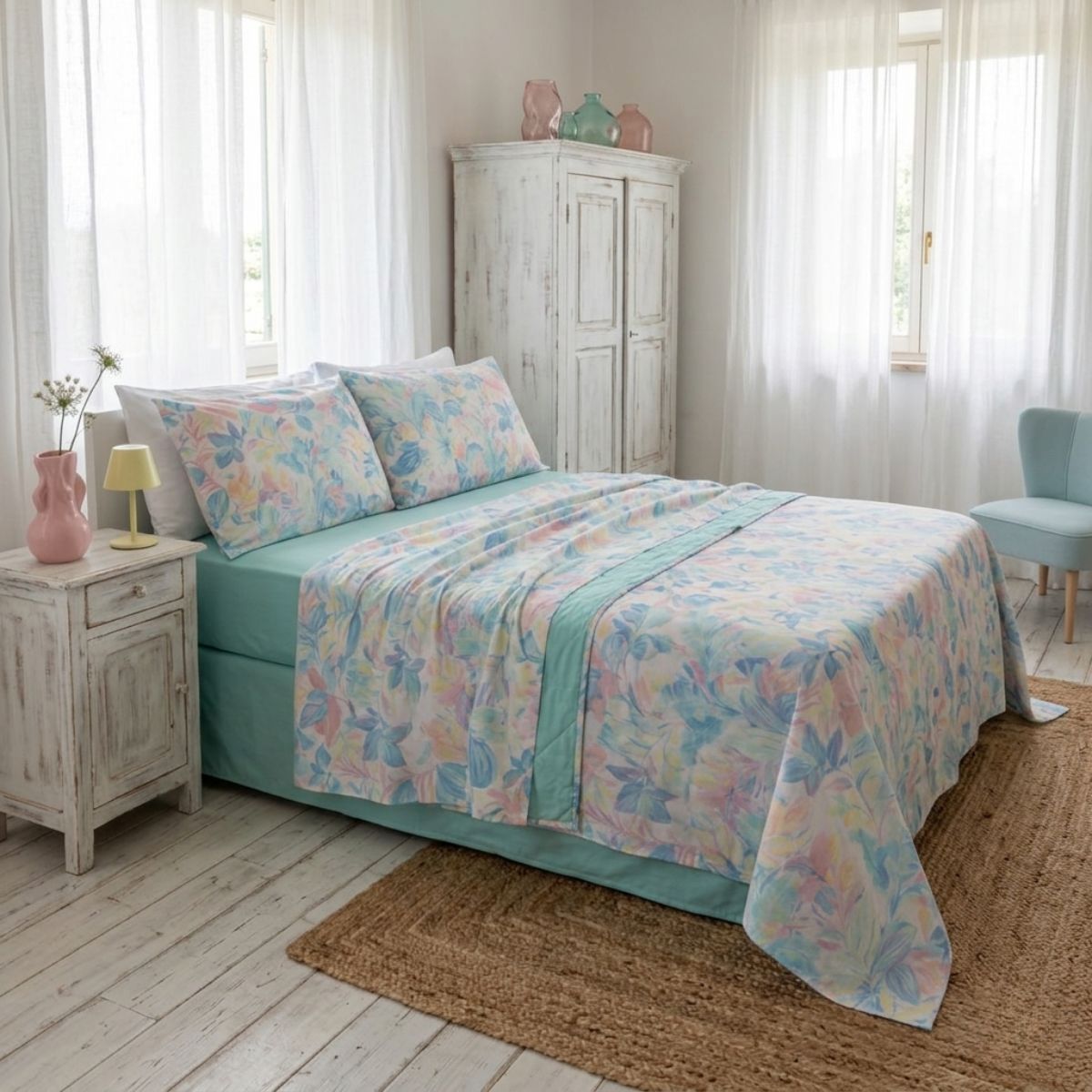 Se sei alla ricerca di una ventata d'aria fresca rilassante Il completo Lenzuola Cattleya in 100% cotone naturale rivestirà il tuo letto con morbidezza e raffinatezza, creando uno stile unico e personale per il tuo letto.