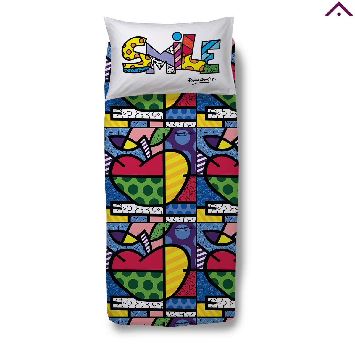Art enthusiast? The Romero Britto cotton canvas duvet cover set is suitable for you and your style, to make your bedroom unique and creative with the bright colors of the collection's designs.