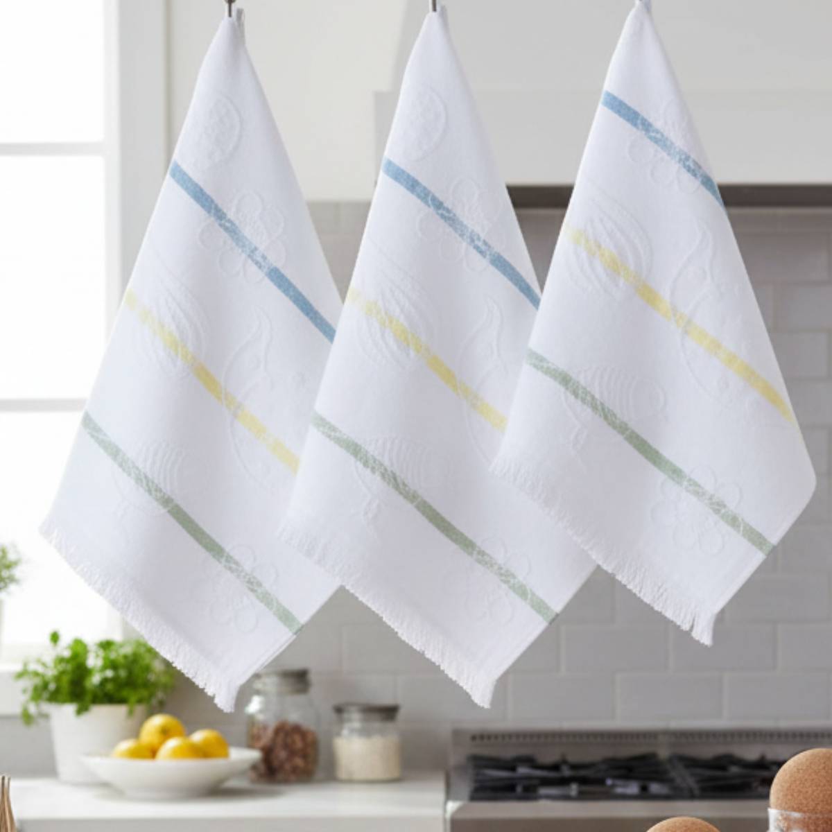 Porta in cucina qualità e praticità con il set da 6 strofinacci in cotone jacquard: resistenti, molto assorbenti e perfetti per asciugare stoviglie, bicchieri e superfici in pochi passaggi. La lavorazione jacquard dona un tocco curato e una texture piacevole, ideale per l’uso quotidiano.