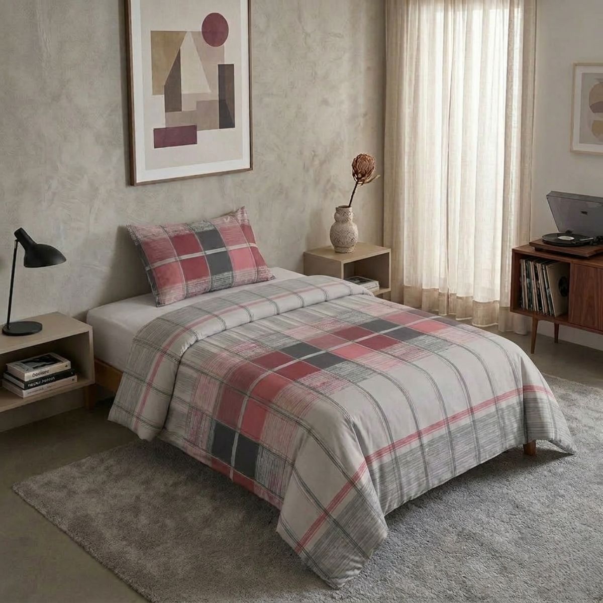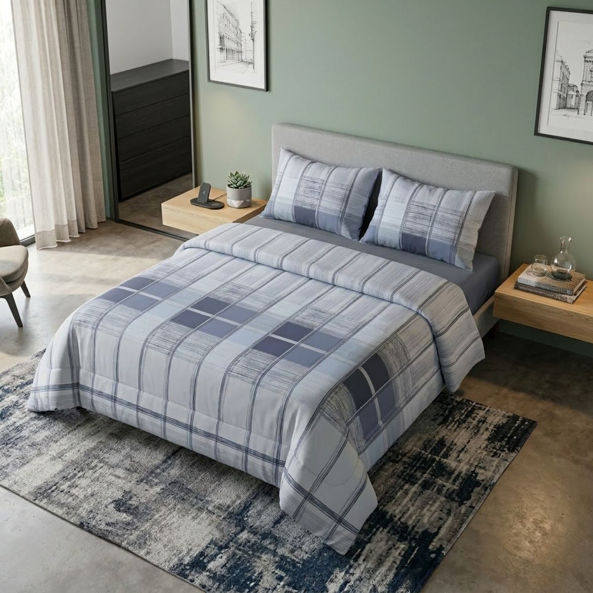 Parure copripiumino in 100% fibra naturale di cotone, materiale traspirante che a contatto con la pelle dona una piacevole sensazione di morbidezza e benessere.