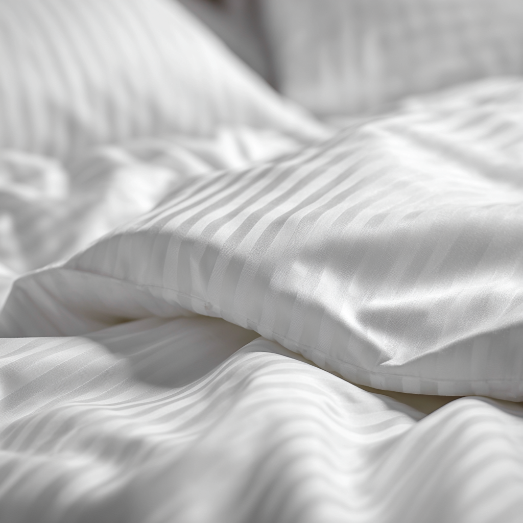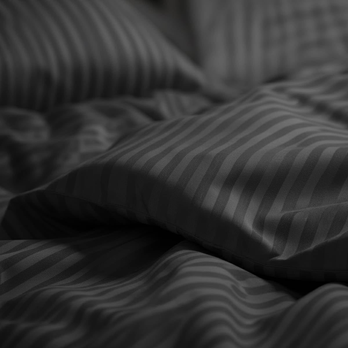 Scopri il lusso quotidiano con la raffinata parure copripiumino in raso di cotone 300 TC rigato con tessitura ratiera. Composta da un elegante sacco copripiumino e due federe coordinate a 4 volani, questa parure unisce morbidezza eccezionale e design sofisticato, donando alla tua camera da letto un tocco di classe senza tempo.
